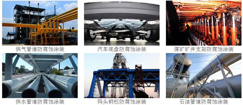 通常用于埋地水泥结构、煤气柜内壁、煤矿矿井支架、矿山井下设施、供热管道、供水管道、供气管道、储罐、石油管道内外壁、埋地管道等地下设施的防腐。或者是水下的浸没区的防腐,如水下结构、码头钢栏和海洋码头设施也适用于底板、汽车底盘、水泥制品、木制品、冷却水等效果非常的好。它主要用于水泥混凝土结构的防腐。防止水汽对基材造成的腐蚀。