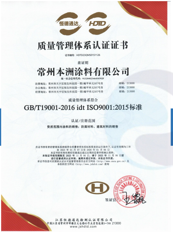 常州本洲涂料有限公司位于常州市武进郑陆镇东青,是一家以油漆涂料为主业的专业化工企业,公司主要品种有:环氧涂料、氟碳涂料、丙烯酸涂料、聚氨酯涂料、聚乙烯涂料、食品级涂料、混凝土防腐涂料、管道防腐涂料、导电绝缘涂料、各类防水防腐涂料、水性涂料、纳米涂料、石墨烯涂料等各类传统及新型产品。