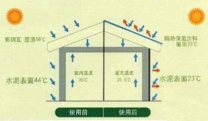 涂装在混凝土等建筑物外层,如住宅、厂房、冷库、现代养殖场、岗亭等隔热降温作用。